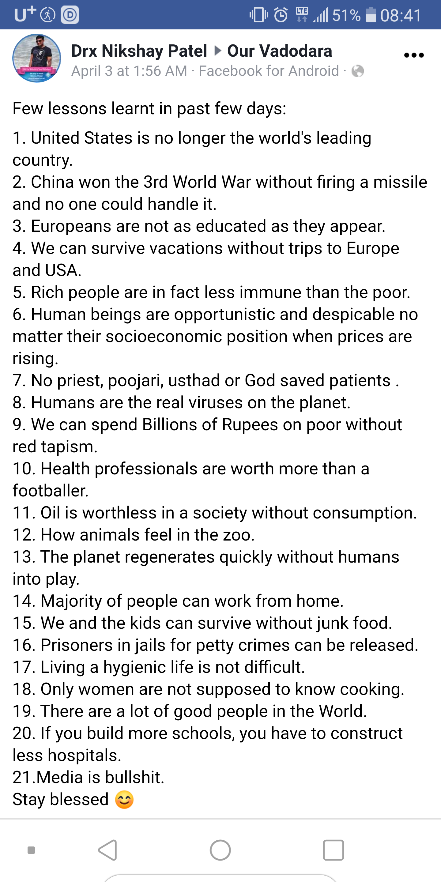 코로나19로 배운 것들 (어떤 영국인의 포스팅)