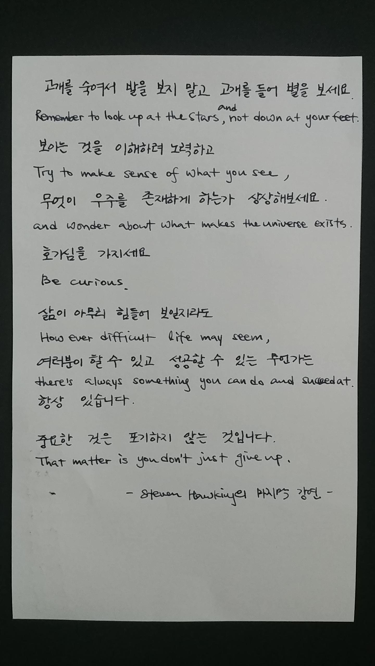 고개를 숙여서 발을 보지 말고 고개를 들어 별을 보세요.
