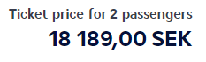 위 두 가격은 성인+어린이에 대해 위탁수하물 포함한 동일 항공편에 대한 가격이다. 대략 123.5 SEK/KRW 쯤 된다.