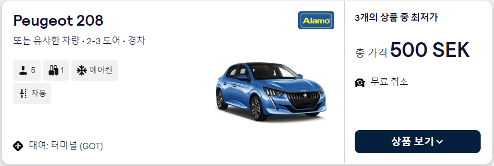 내가 눈여겨볼 부분은 검은색 글자들. UberX가 프리우스급이라면 짐 싣기에 약간 아슬아슬해 보인다. 100sek 정도 차이나는 Uber Comfort면 괜찮으려나.