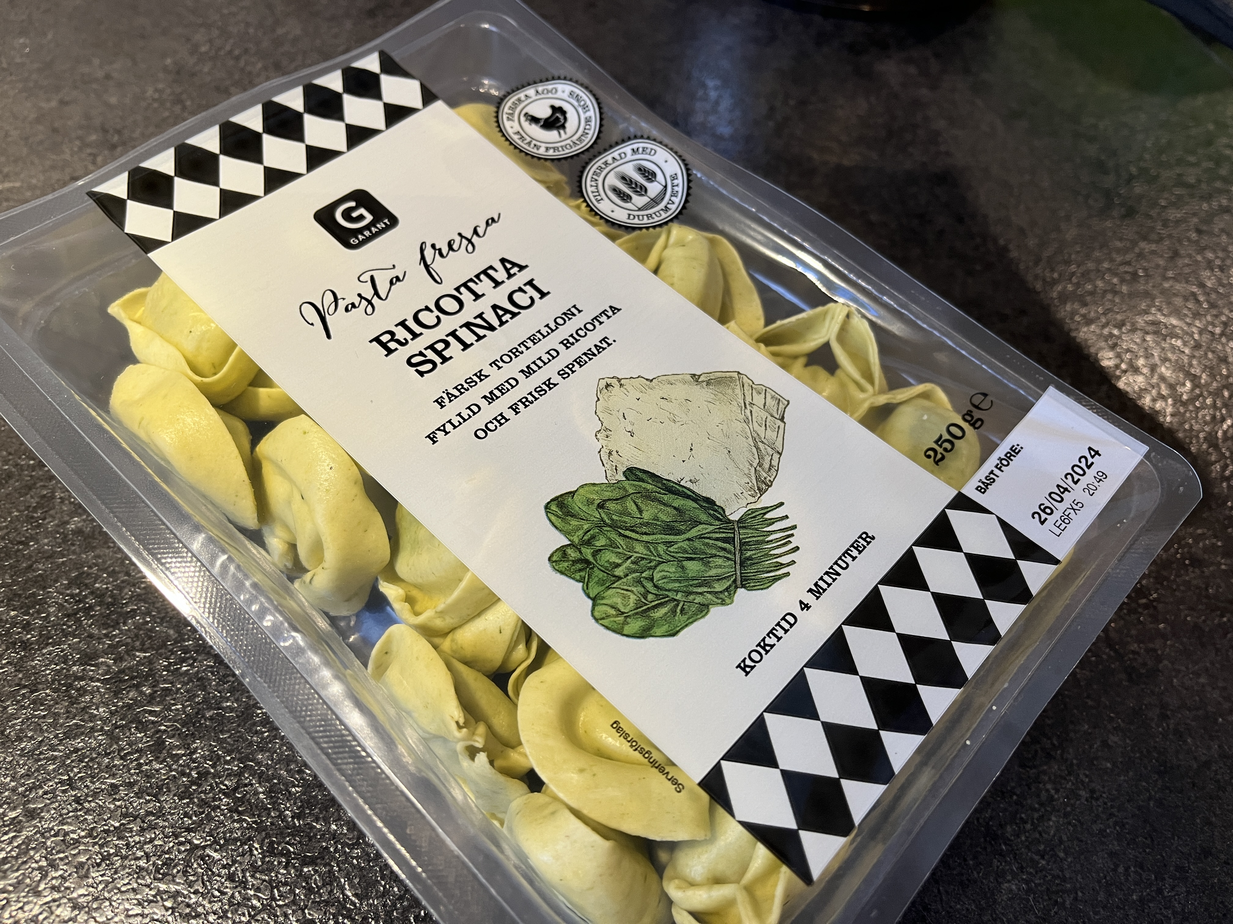 몇 주 전 직장 동료 집에 초대받아 가서 먹었던 토르텔로니 파스타가 인상적이라 마트에서 비슷한 걸 사와선 냉장고에 처박아 두고 있었다.