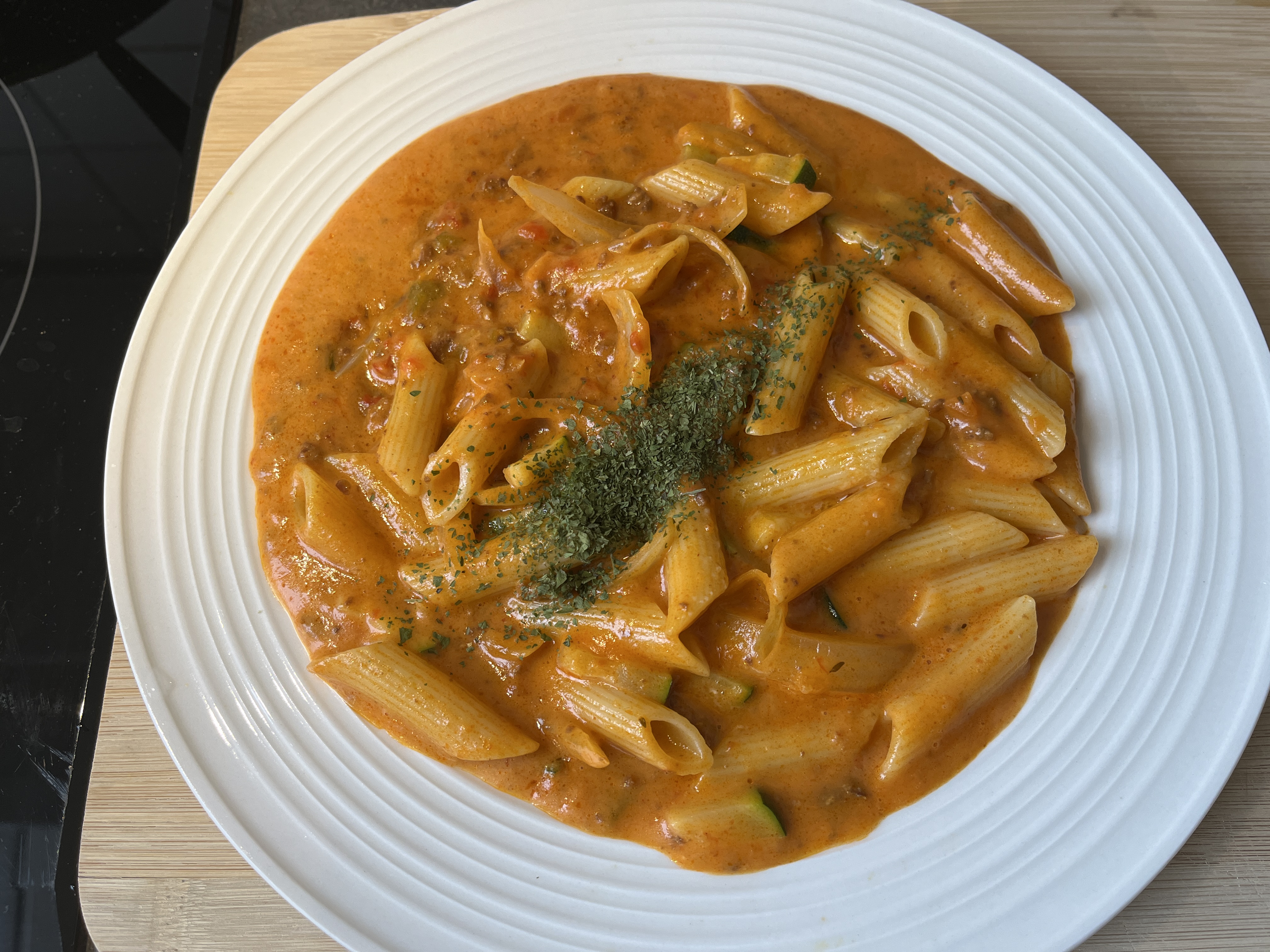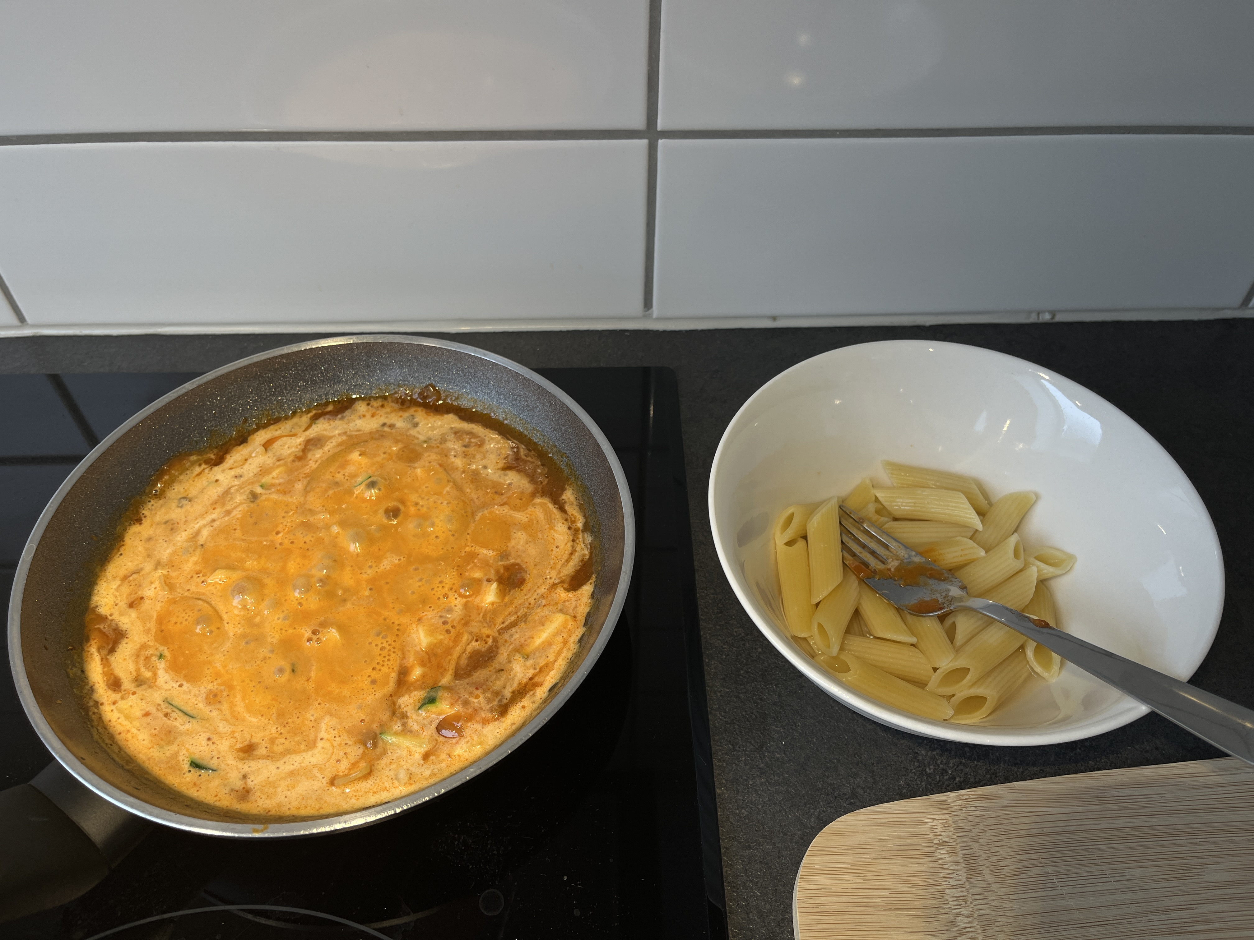 귀찮았지만, 말라 비틀어진 팬네 파스타를 소비하려 저녁을 만든다.